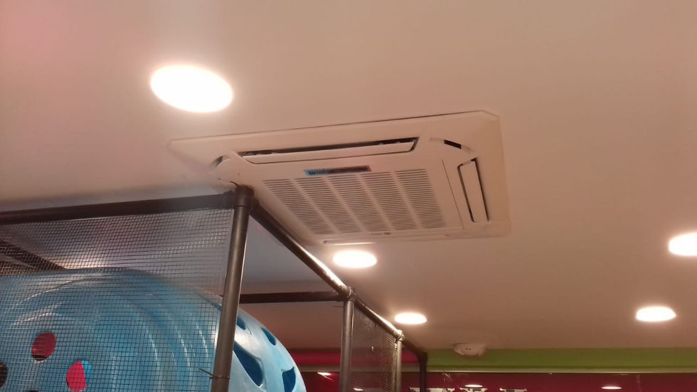 KFC Plaza Antenas, CDMX: Instalación de sistema VRV de 20 T.R con evaporados tipo Fan&Coil y Cassette, asi como su sistema de ductos y difusores, también cuenta con extracción de cocina y baños.